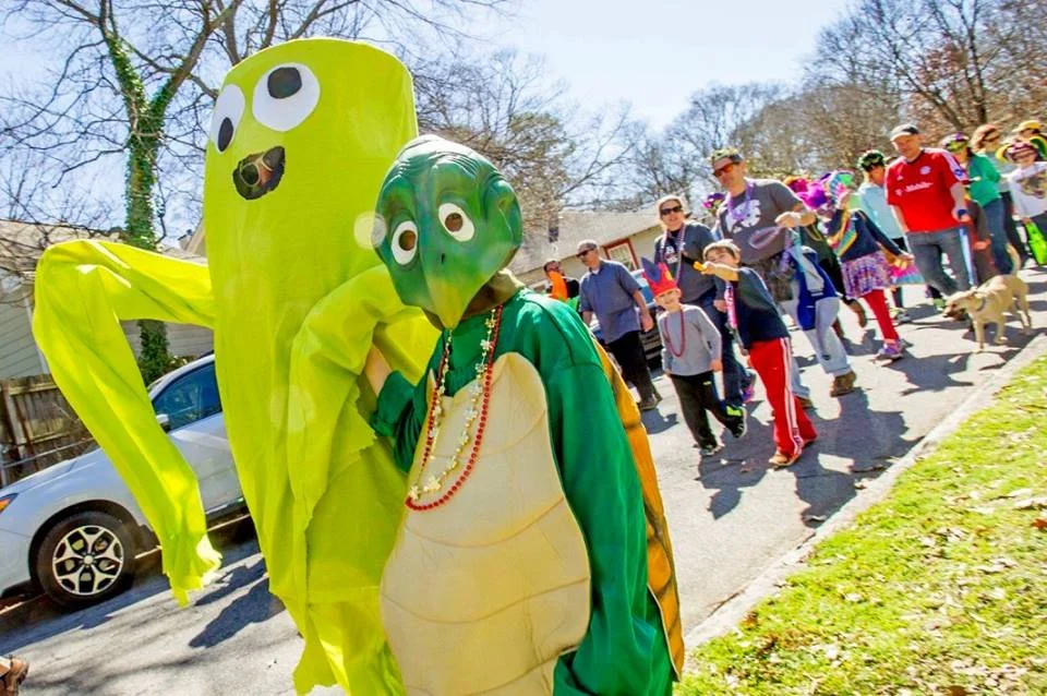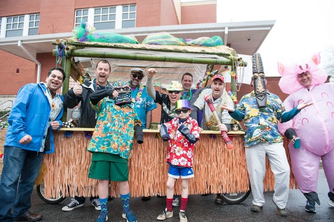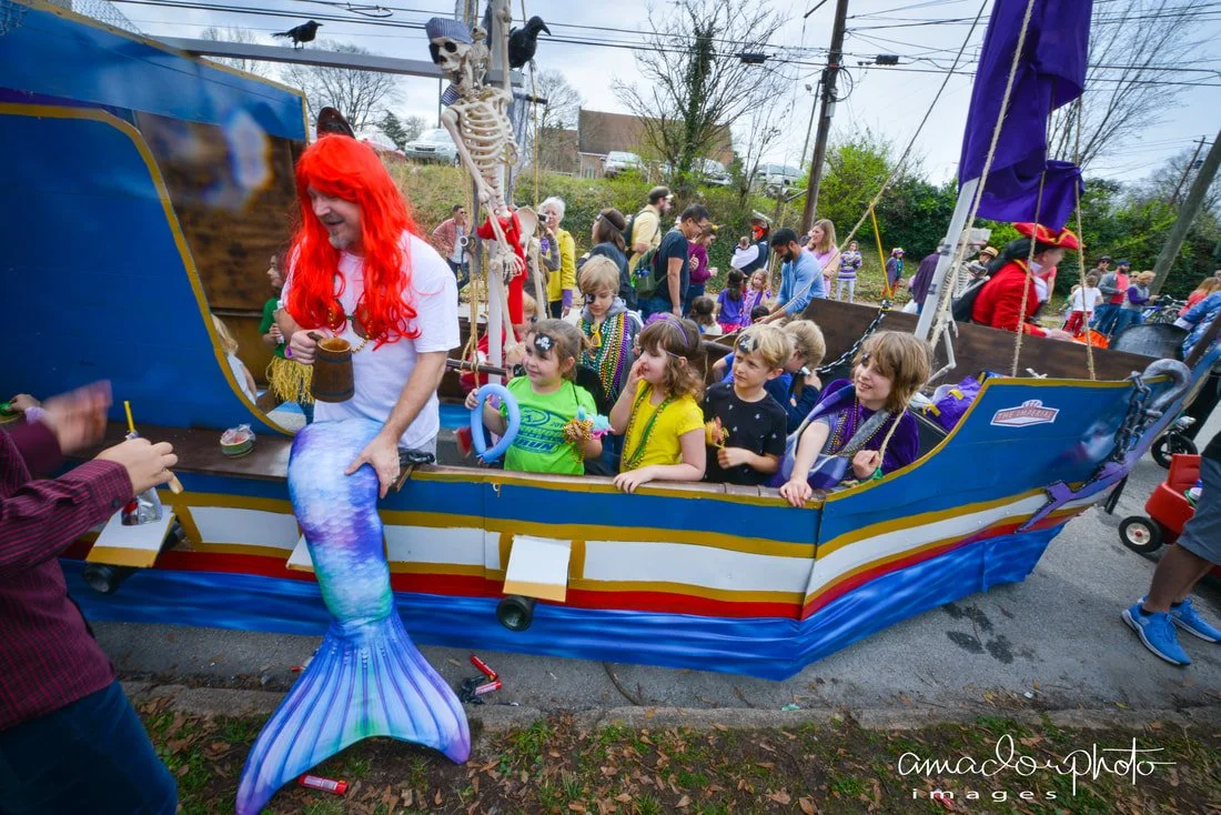 Designing a float for the Mead Road Mardi Gras Parade is all about creativity and fun! Start by considering the theme or message you want to celebrate, then think about how to bring that to life. You can upcycle old items like a wagon, stroller, or even your Mad Ave Derby car as the base, or get adventurous with a trailer or bike as your foundation. Cover it with colorful decorations, lights, streamers, or Mardi Gras beads—whatever helps tell your story. Don’t forget to add costumes and props to match your float’s theme and make it a memorable part of the parade! Whether you’re marching as a group or riding solo, the possibilities are endless. The more creative, the better!